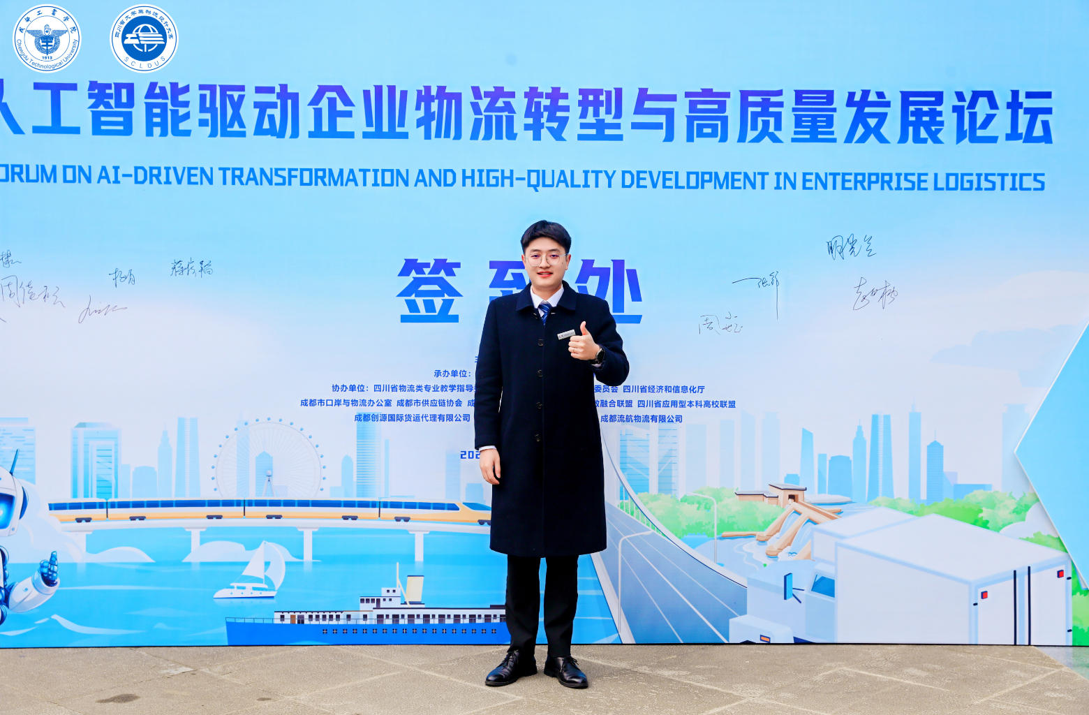 2025年11月23日,公司营销中心王会棣经理受邀参加 “人工智能驱动企业物流转型与高质量发展论坛暨2025年(第五届)四川省大学生物流设计大赛颁奖典礼”并做专题演讲,共同中欧班列、中俄贸易运输等企业物流转型等热点话题。